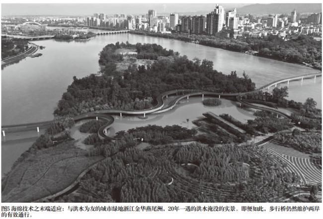 微觀的“海綿體”。“海綿城市”和“海綿國(guó)土”最終必須要落實(shí)到具體的場(chǎng)地,包括廣大鄉(xiāng)村田園上的陂塘、自然的水渠,城市中的公園和局域的集水單元的建設(shè)(圖3、圖4、圖5),這一尺度上的工作是對(duì)一系列生態(tài)基礎(chǔ)設(shè)施建設(shè)技術(shù)進(jìn)行集成應(yīng)用,包括保護(hù)自然和文化遺產(chǎn)的最小干預(yù)技術(shù)、與洪水為友的生態(tài)防洪技術(shù)、加強(qiáng)型人工濕地凈化技術(shù)、生態(tài)系統(tǒng)服務(wù)仿生修復(fù)技術(shù)等,這些技術(shù)重點(diǎn)研究如何通過(guò)具體的景觀設(shè)計(jì)使“海綿體”的綜合生態(tài)服務(wù)功能發(fā)揮出來(lái)(俞孔堅(jiān),2016)。