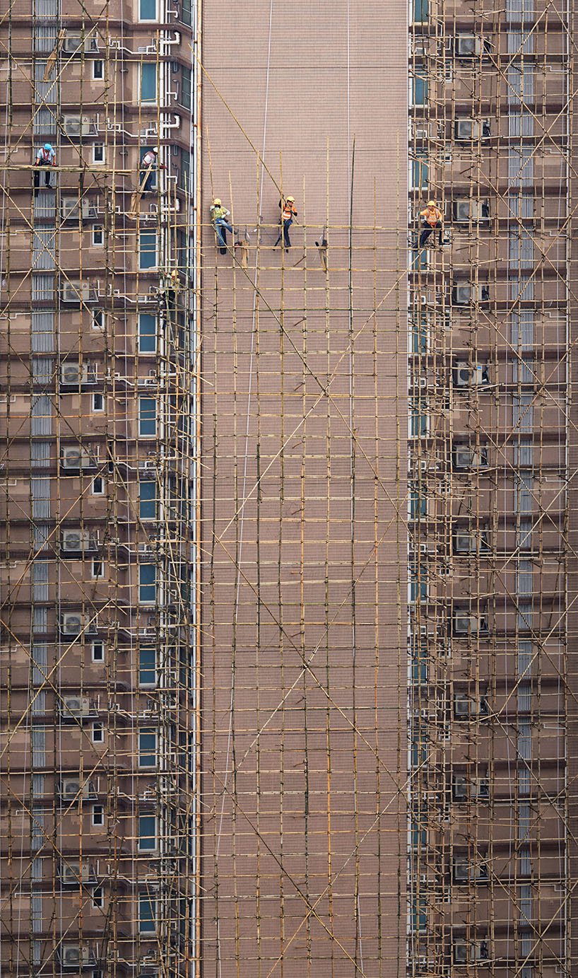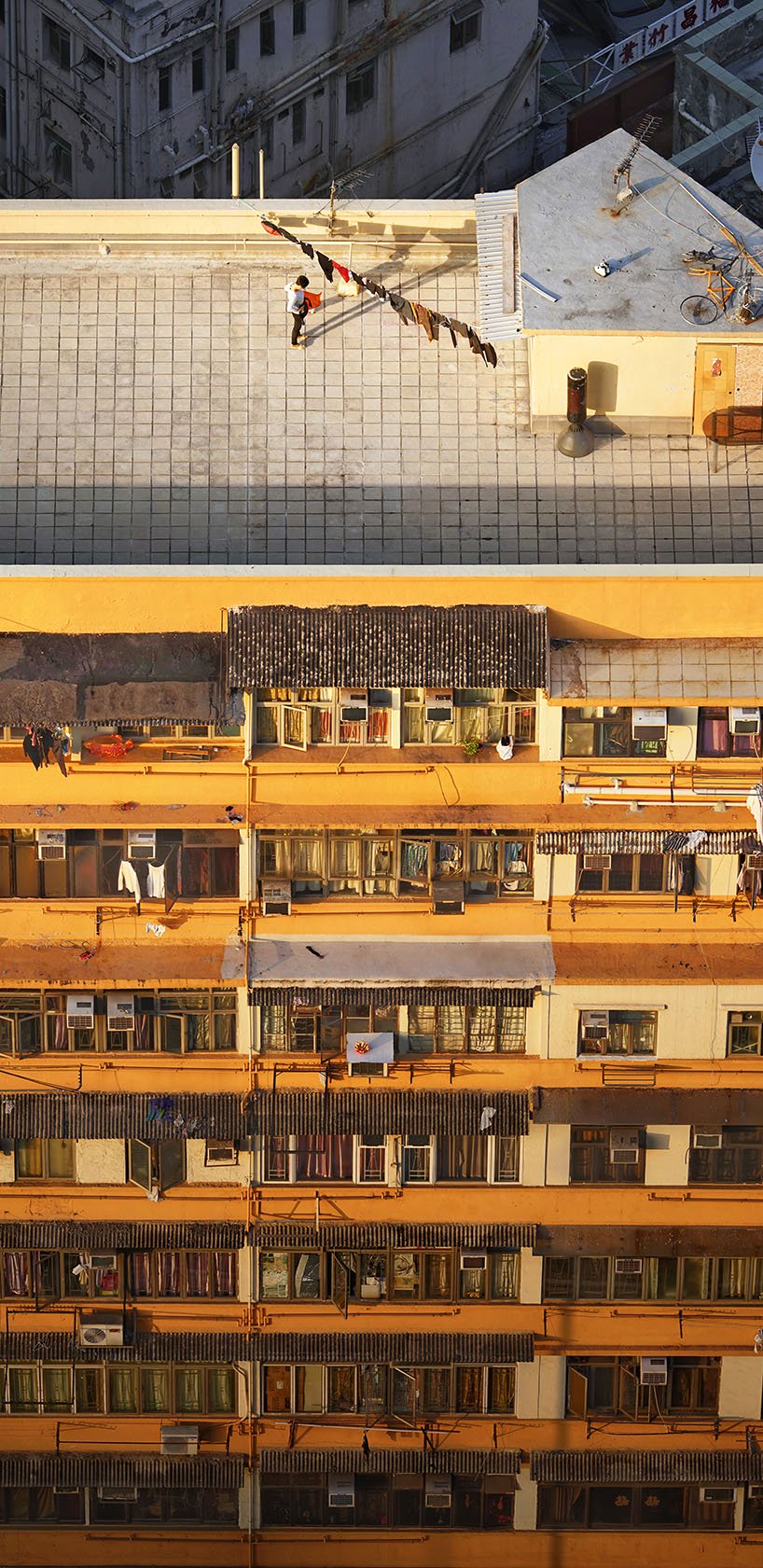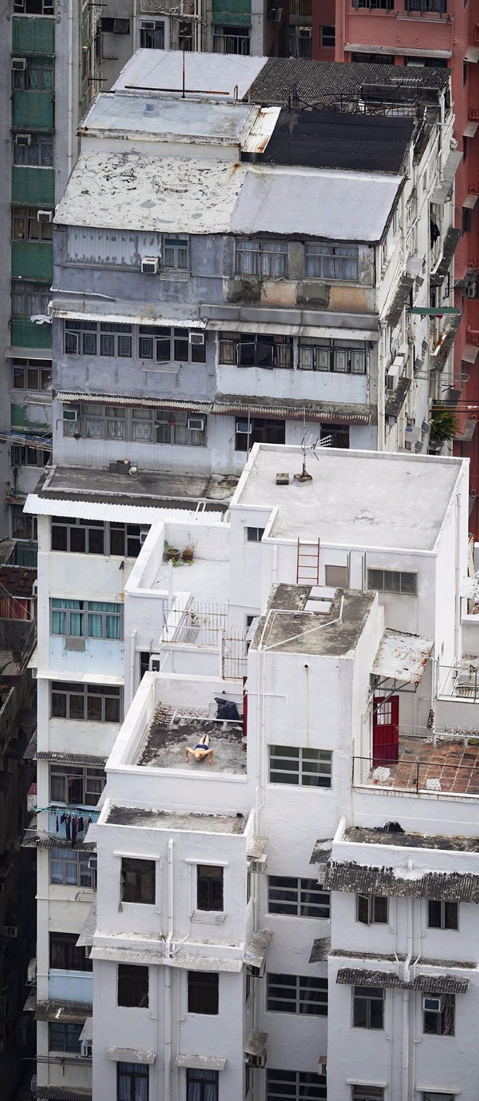 romain jacquet-lagrèze把自己當(dāng)成一位城市觀察員,等待著抓住那些有趣的場(chǎng)景,而不是聚焦于某個(gè)人或某些特定的地點(diǎn)。第一張照片拍攝于2014年,是在執(zhí)行另一個(gè)項(xiàng)目時(shí)偶然拍到的?!爱?dāng)時(shí)附近的一片屋頂突然出現(xiàn)在燦爛的陽(yáng)光下,而且我看到有什么在動(dòng)?!睌z影師說(shuō),“我意識(shí)到是有人在修天線,他就像是陽(yáng)光下的焦點(diǎn)一樣,于是我快速地拍下了這個(gè)場(chǎng)景,那個(gè)瞬間就像有魔力一樣吸引了我?!敝钡綆讉€(gè)星期以后,在偶然看到另一個(gè)天臺(tái)上,有一個(gè)小女孩在拍攝游行隊(duì)伍的情景時(shí),jacquet-lagrèze才決定做一個(gè)影集作品concrete stories,來(lái)記錄香港的天臺(tái)生活。拍攝的屋頂大部分都是公共屋頂,攝影師也把它叫做是“天上的院子”。