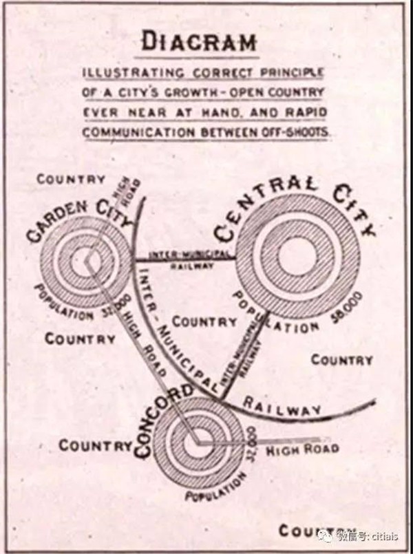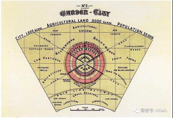 霍華德在他的著作《明日,一條通向真正改革的和平道路》(1898年)中認為應該建設一種兼有城市和鄉(xiāng)村優(yōu)點的理想城市,他稱之為“田園城市”。