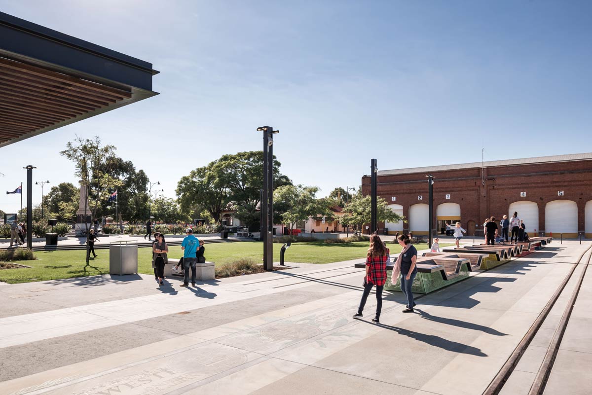 鐵路廣場是在前米德蘭鐵路上建造的新公共廣場。是一個19世紀后期工業(yè)建筑群,經(jīng)過修復,成為新時代的城市村莊。鐵路廣場被設(shè)計成一個新的現(xiàn)代公共空間,重型鐵路基礎(chǔ)設(shè)施轉(zhuǎn)變成為新的社會基礎(chǔ)設(shè)施使舊場地得到新的利用。在MRA和由PLACE實驗室牽頭的設(shè)計團隊的指導下,鐵路廣場正在轉(zhuǎn)變?yōu)镸idland的新市民心臟。