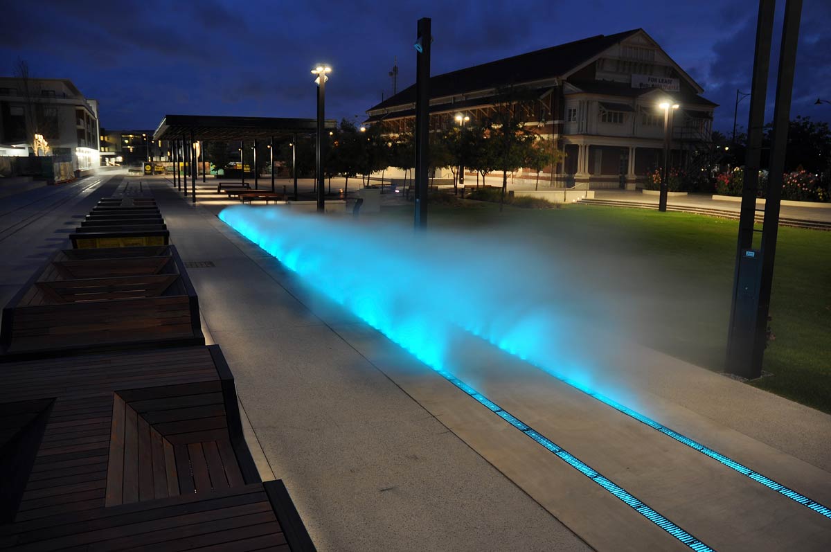 水線是一種線性噴霧和照明功能,它參考了蒸汽機的發(fā)明和火車穿過現(xiàn)場的運動。