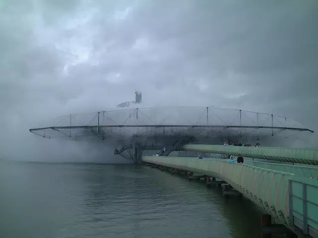 紐約著名設(shè)計工作室 Diller Scofidio + Renfro 從過去的經(jīng)驗中發(fā)現(xiàn)了 Instagram的力量。2002 年他們在瑞士的伊凡登勒邦城新城堡湖畔建造了 Blur Building,水從湖里泵上來,過濾,通過緊密排列的高壓噴嘴噴出細(xì)密水霧,然后讓整個建筑變得模糊,同時又融入了那個環(huán)境。