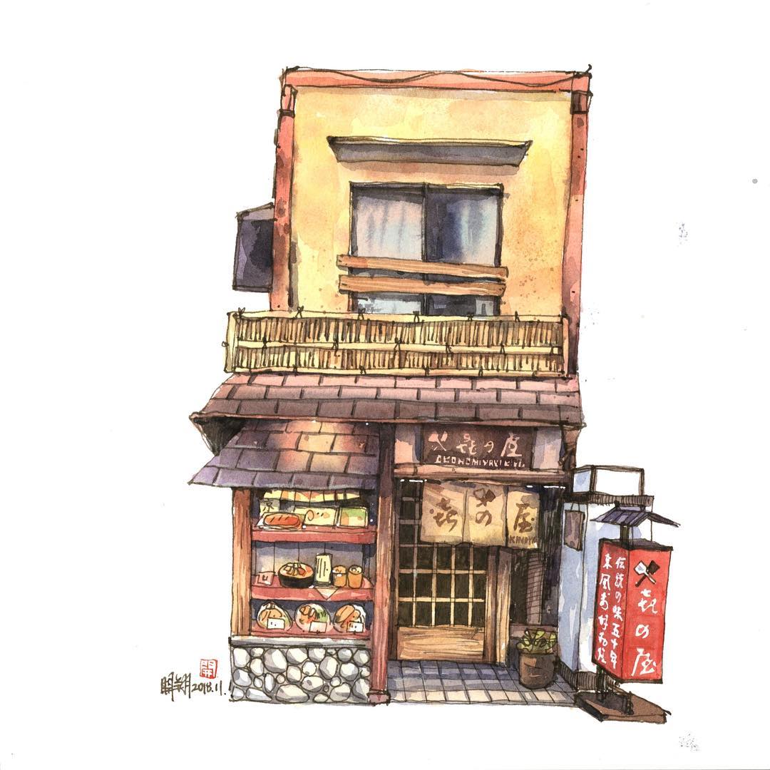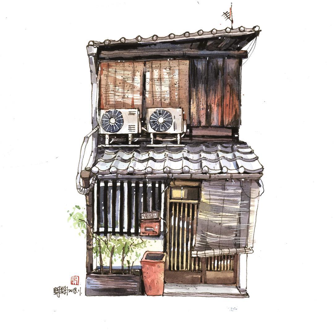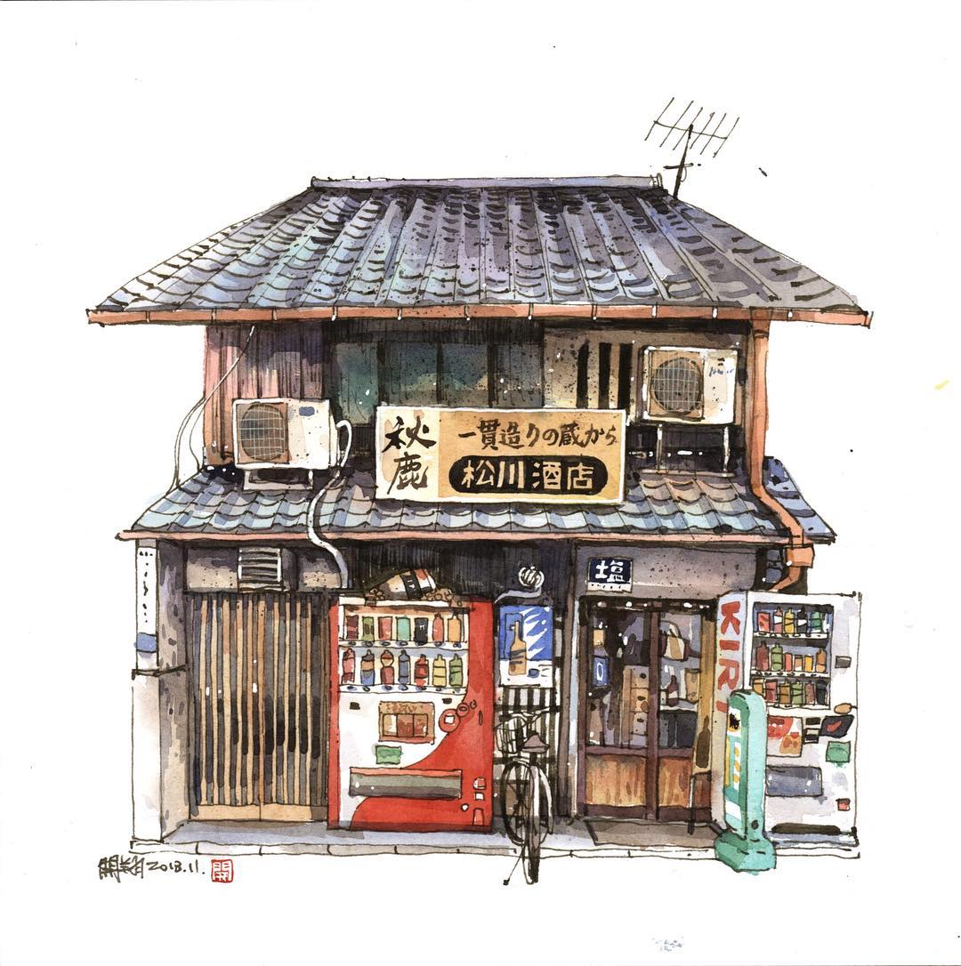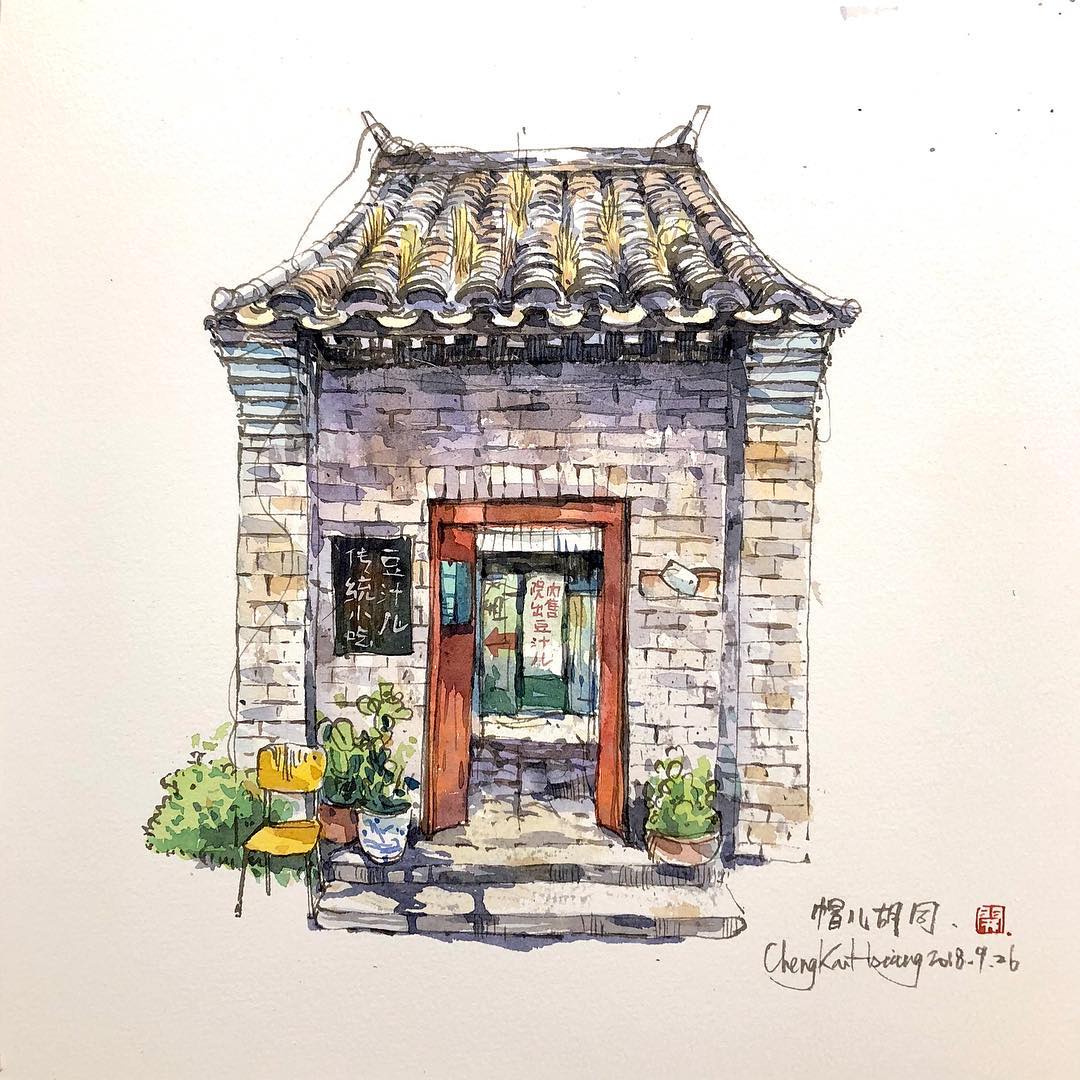 來自臺灣的水彩畫家鄭開翔Cheng Kai-Hsiang)以水彩寫生的方式,記錄旅途中的風(fēng)景。他的作品看上去輕松愜意,他通過畫筆捕捉到許多城市中的角落和局部,有些看似平常的街景在他的描繪下,都變得生動而有趣。