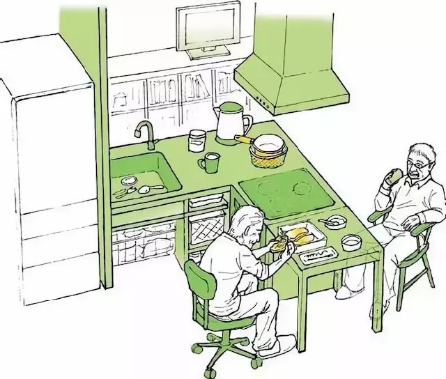 土谷貞雄為老年人設(shè)計(jì)的“坐式”廚房,配圖來自他的新書 ▲