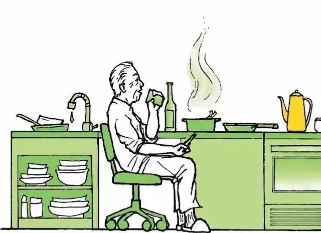 土谷貞雄為老年人設(shè)計(jì)的“坐式廚房”,配圖來自他的新書▲