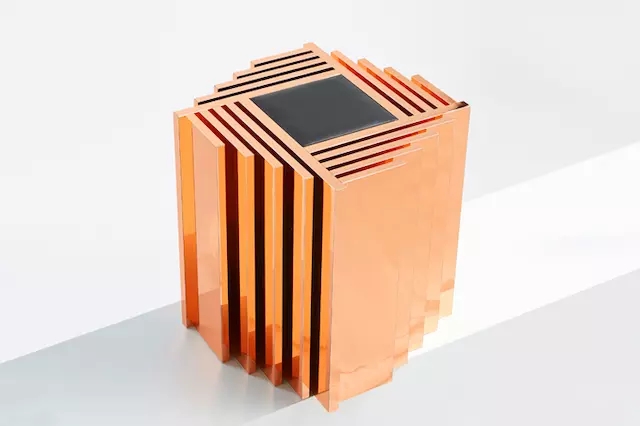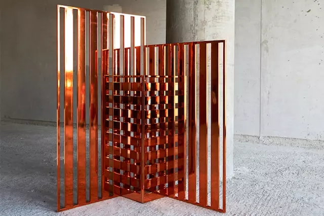 為了模仿這種外觀,“AIAreesh”系列包含的咖啡桌、凳子、屏風(fēng)和桌燈使用鋁合金、或者玻璃等有光澤的材質(zhì)以體現(xiàn)光影搖晃;條狀物明顯是對樹枝的結(jié)構(gòu)的模仿。