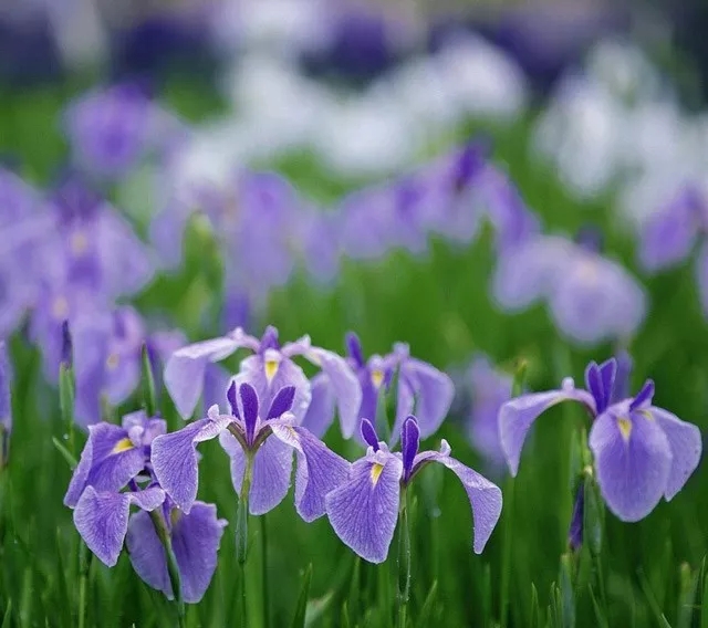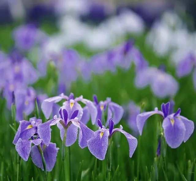 多年生草本宿根植物,株高40-60cm,花色淺藍(lán)色、藍(lán)色、藍(lán)紫色,花期4-5月。