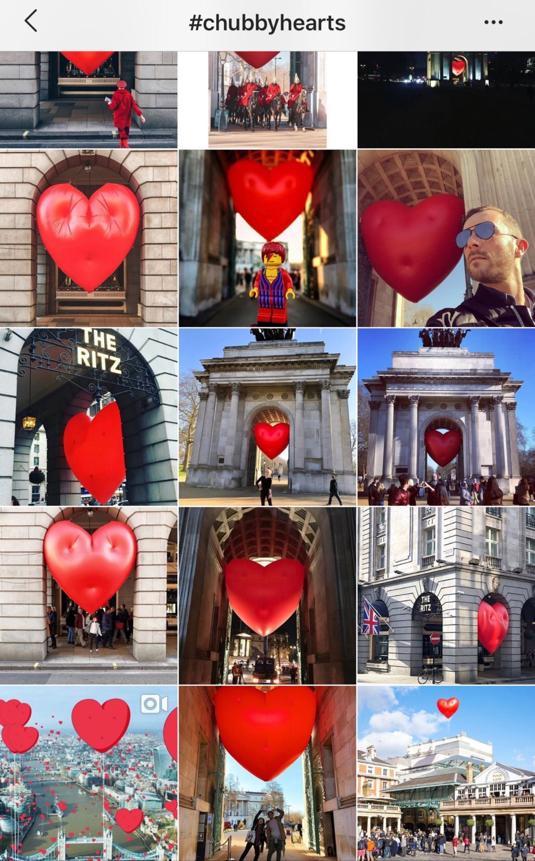 白天,3 個 “Chubby Hearts” 分別懸浮在不同地點,晚上被放氣卸下后,第二天它們又會重新出現(xiàn)于倫敦的另 3 個新地點中。其中一個 “Chubby Hearts” 已在今年裝置中被重復(fù)使用。