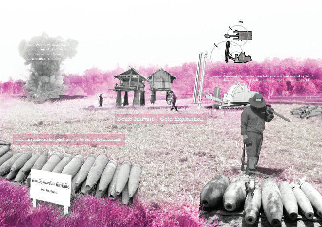 2012年,哈佛大學(xué)設(shè)計(jì)學(xué)院景觀專業(yè)學(xué)生陸小璇在畢業(yè)設(shè)計(jì)中以題目為《炸彈、樹(shù)木和黃金》針對(duì)老撾的這一現(xiàn)場(chǎng)做了研究及設(shè)計(jì)。以下是陸小璇針對(duì)她的畢設(shè)在一席的演講。