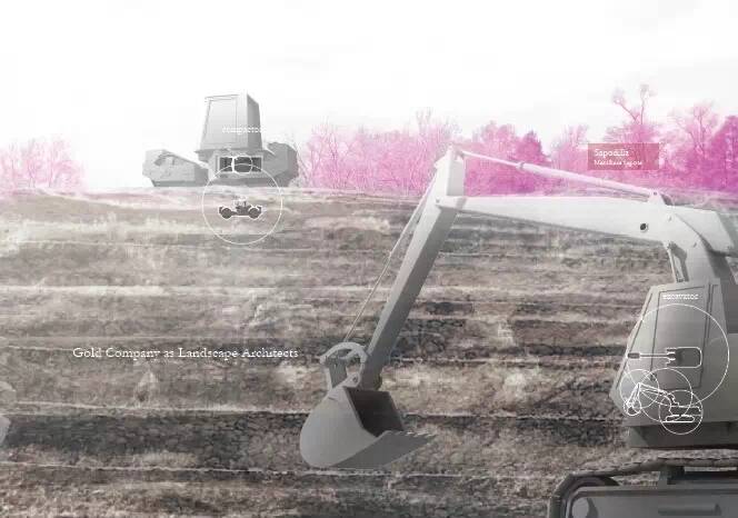 景觀是承載物質(zhì)與能量流動(dòng)的這樣一個(gè)載體,它承載了物質(zhì)流動(dòng)的循環(huán)過(guò)程,景觀它本身其實(shí)就是為了研究,在豎向與橫向上各個(gè)元素之間在時(shí)間維度上的相互關(guān)系。我的項(xiàng)目通過(guò)重新構(gòu)建三種元素,也就是我所說(shuō)的采礦、排雷以及農(nóng)業(yè)耕作來(lái)形成一種新的收獲系統(tǒng),收獲糧食、炸彈和黃金。