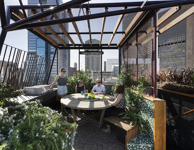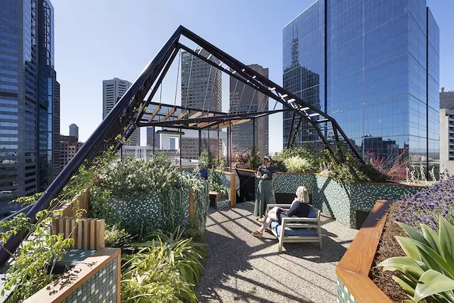 Phoenix Rooftop 位于墨爾本繁華市中心的 30 層樓頂上,作用壯麗的城市景觀。這座位于高空中的花園是一處微縮的戶外休閑空間,為穿行在城市生活與郊野風光之間的人們提供了過渡場所。