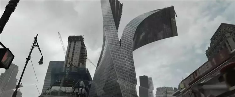 根據(jù)專業(yè)媒體的報道,城市變形扭曲難度最大。制作組參考了《盜夢空間》中經(jīng)典的街道折疊效果。