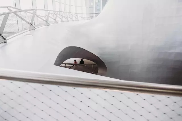 建筑內(nèi)部本身的“扭曲”設(shè)計,也是旨在盡可能減緩建筑物的老化——無柱的開放空間充滿多種可能,因而允許未來的建筑師將這個設(shè)施用于其他的目的,而非必須推倒重來。