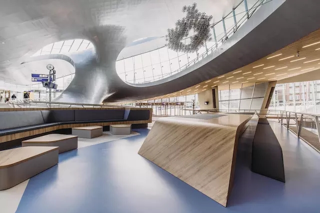 新的火車站最終成為了涵蓋多種公共交通的換乘樞紐,大廳設(shè)有服務(wù)區(qū)、零售店、會議中心和地下停車場,還與市中心、市民公園直接相連。