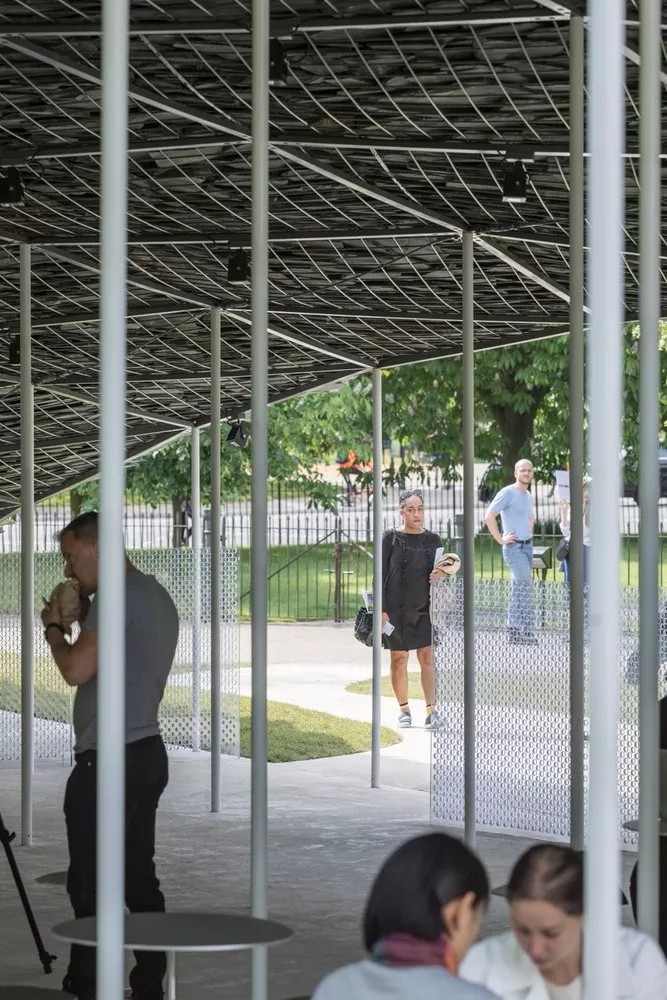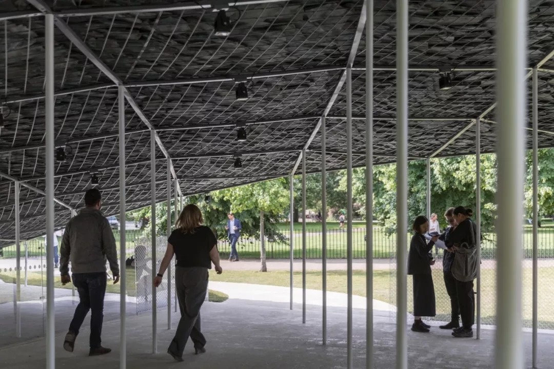 兩人的設(shè)計旨在向蛇形畫廊的永久新古典建筑和場地的起伏地形致敬。最終設(shè)計是通過一個扭曲的矩形網(wǎng)格結(jié)構(gòu)來實現(xiàn)的。