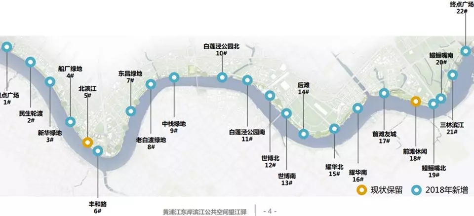 空間特點:望江驛共計22座,沿東岸21公里均勻布置,結(jié)合區(qū)段定位、沿線腹地功能,提供完善的公共服務(wù),以滿足濱江日益多樣的游憩需求。目前22座現(xiàn)已全部建成,并投入使用。望江驛已成為黃浦江貫通和品質(zhì)提升的標(biāo)志性景觀,為浦東新區(qū)其他濱水地區(qū)建設(shè)提供了啟迪。