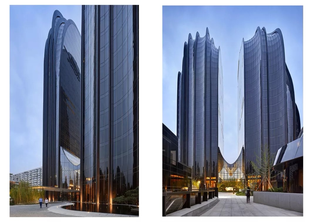 這句話,讓我又想起了他備受爭議的作品——朝陽公園廣場。這個像巖石山體的巨型黑色建筑,面對公園的一面有著柔和的不規(guī)則界面,像是自然的延伸,模糊了城市和自然的界線。但面對城市的一面,建筑又呈現(xiàn)出鋒利、尖銳的“對抗”形態(tài)。