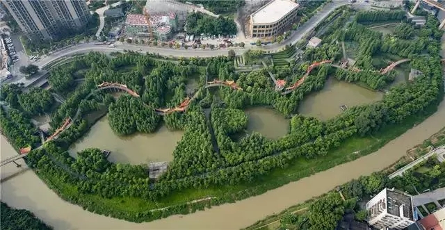 設(shè)計(jì)綜合運(yùn)用雨洪生態(tài)管理的滲透、滯蓄和凈化技術(shù),以及與水為友的適應(yīng)性設(shè)計(jì),并結(jié)合污染和硬化河道的生態(tài)修復(fù),用最少的錢干預(yù),保留現(xiàn)狀植被,融入藝術(shù)裝置和慢行系統(tǒng),并將生態(tài)建設(shè)與城市開發(fā)相結(jié)合,構(gòu)建了一條貫穿城市的、低維護(hù)的生態(tài)綠道,為城市提供全面的生態(tài)系統(tǒng)服務(wù)。