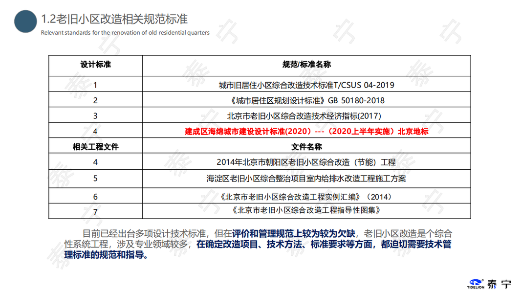高俊斌首先解讀了老舊小區(qū)改造的相關政策,包括各地對改造的要求對比。他以江西 、北京、廈門等地為例闡述了具體標準,重點提到了對技術管理標準的規(guī)范和指導的迫切需求;在老舊小區(qū)綜合整治工作方案中,他簡單解釋了2018~2020年的整治范圍、內容,以及城市舊居住區(qū)綜合改造技術標準。