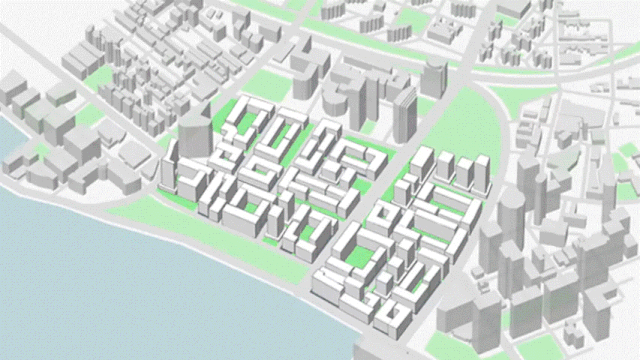 ▼Sidewalk 開發(fā)的城市設(shè)計(jì)工具,可以根據(jù)給定的限制信息,通過機(jī)器學(xué)習(xí)和算法,自動(dòng)生成規(guī)劃雛形,并可進(jìn)行初步的日照交通等分析