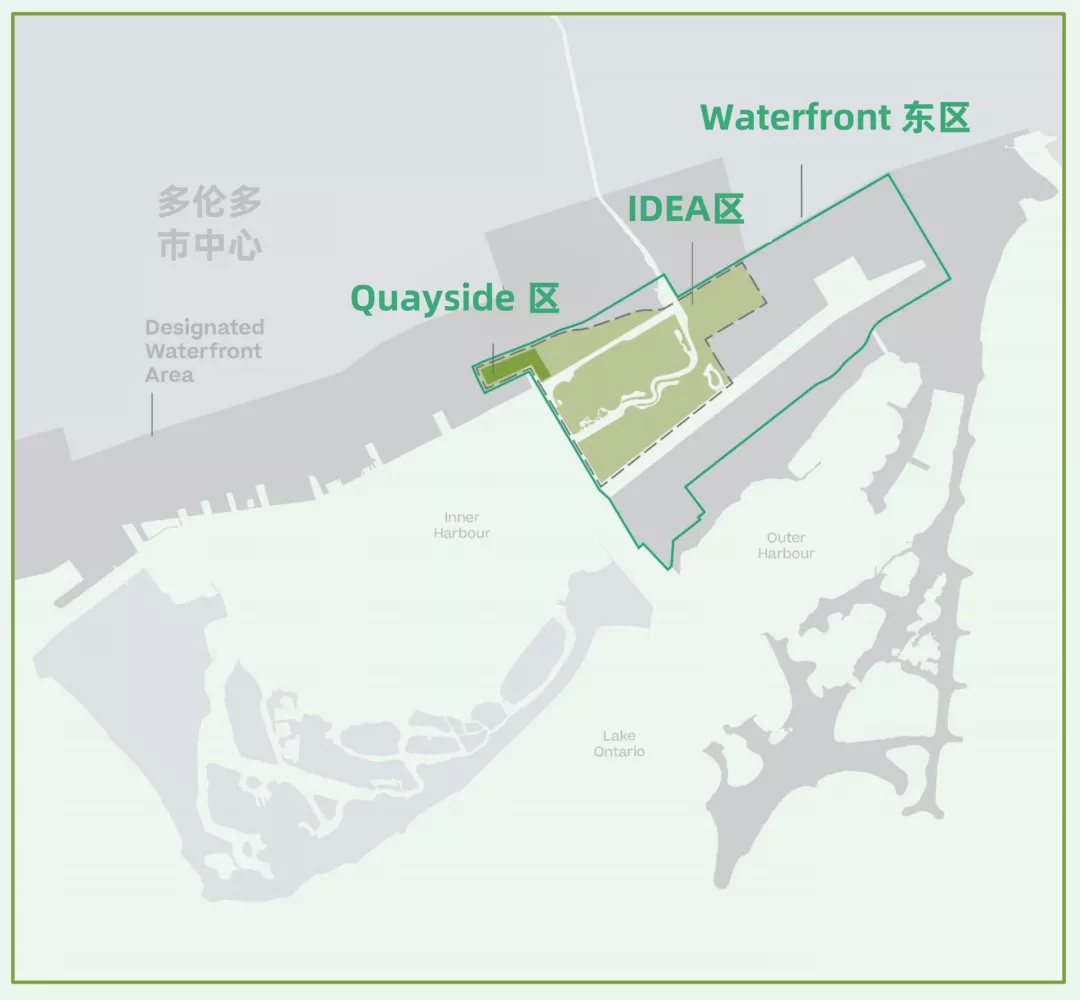 濱水區(qū)復(fù)興公司(Waterfront Toronto)是一個(gè)多倫多、安大略省和聯(lián)邦政府的合資企業(yè),其誕生于世紀(jì)之交,加拿大政府著眼多倫多濱水空間復(fù)興之際。多倫多濱水區(qū)經(jīng)過十多年的建設(shè)與發(fā)展,其中的濱水中心區(qū)(the Central Waterfront)已初具規(guī)模。多倫多政府決定再接再厲,開拓與之相鄰的濱水東區(qū)(the Eastern Waterfront)——這片尺度更多、現(xiàn)狀建筑與基礎(chǔ)設(shè)施相對(duì)較少的舊工業(yè)區(qū)。