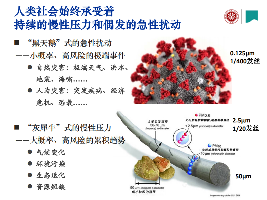 ▲ 人類社會(huì)面對(duì)的慢性壓力與急性擾動(dòng)