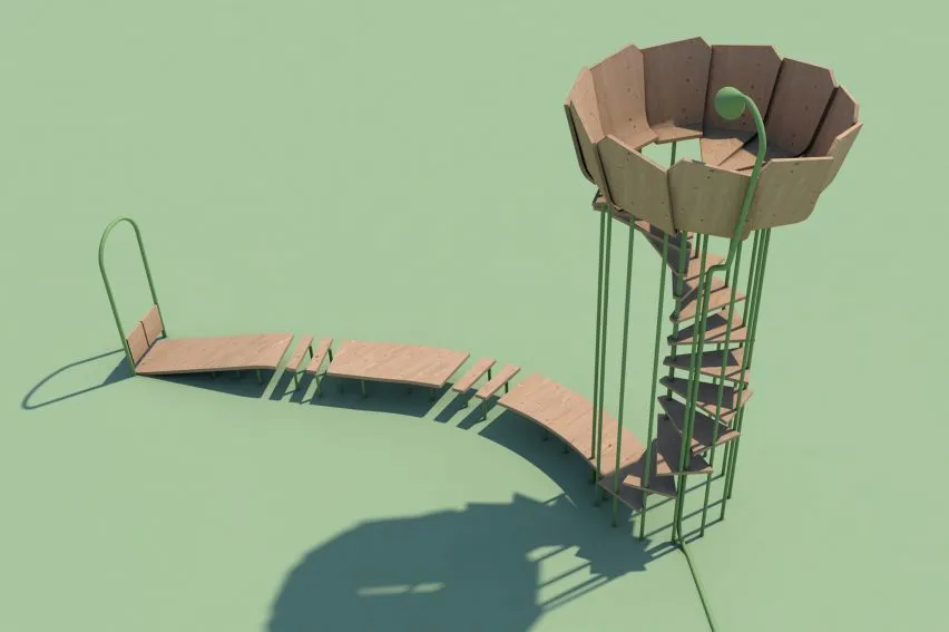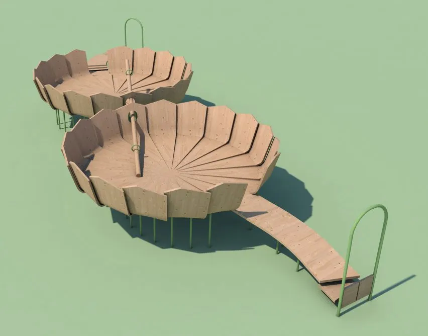 所有與孩子們直接接觸的部分,包括扶手、管道等都用便于清潔消毒的金屬材料制成,設(shè)計師還計劃安裝消毒噴霧裝置,使消毒更加便捷。而亞馬遜睡蓮的造型則是為了借蓮葉超高的承重能力,給人以穩(wěn)定、安全的印象。圖片來源:Dezeen