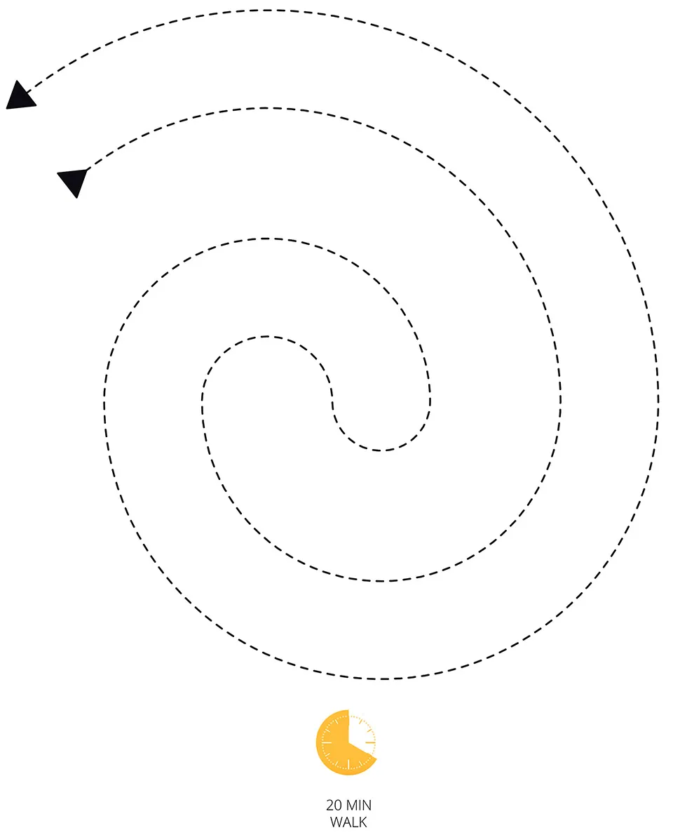 公園以人類的指紋為原型進行空間的組織,一系列平行的小路如同指紋一樣,引導(dǎo)著游客們在起起伏伏的景觀中穿行。每條小路都有獨立的入口和出口,從而可以明確地告知人們其是否已經(jīng)被人占用。