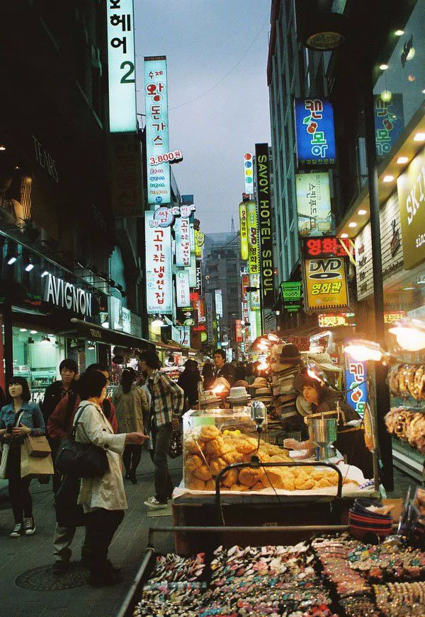 街邊小吃攤在韓國已經(jīng)形成一種“馬路文化”,攤主們主要在人流量大的地段出攤。在地鐵系統(tǒng)發(fā)達(dá)的首爾,繁華地段的地鐵站口旁經(jīng)常是二十四小時人流不斷,各式小攤在這些地方聚集,成為了一道特色的城市風(fēng)景。