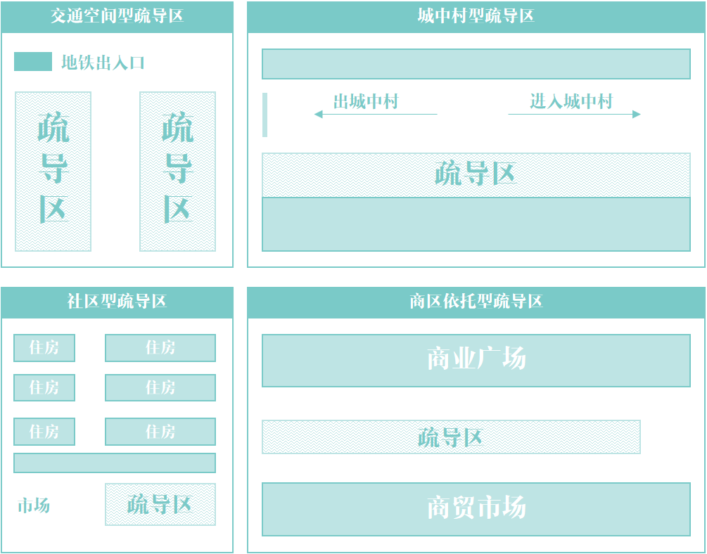 - 交通空間型疏導(dǎo)區(qū):一般設(shè)置在交通站點(diǎn)周邊人行道兩側(cè),以餐飲為主,服務(wù)于流動的通勤人員。