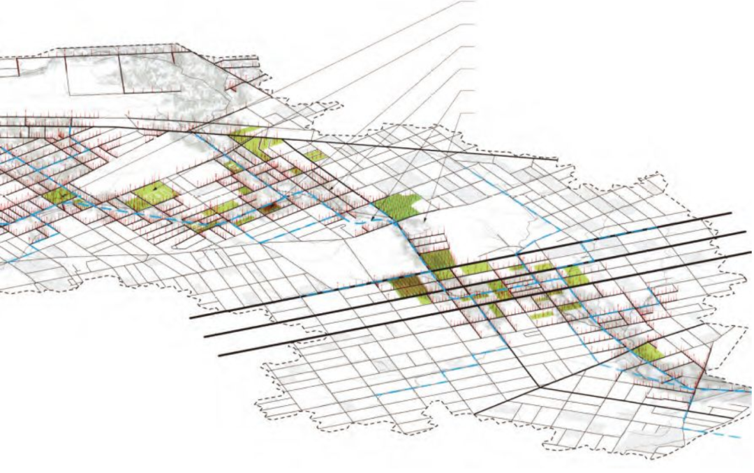 密爾溪(Mill Creek)社區(qū)地處費城西部,是一個以低收入黑人為主的社區(qū)。Ann Spirn教授帶學生開展了費城西區(qū)景觀項目,方案將城市景觀看成一個在空間上聯(lián)系也在時間上延展的系統(tǒng),不再專注于眼前的問題——貧困和土地空置率,而是把問題轉變?yōu)槿绾卧跁r間和空間兩個維度處理人和自然的關系。