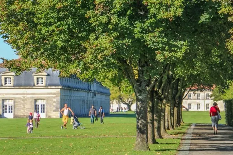 回歸花園是一個沿堅石城夏朗德河修建的花園,旁邊是一幢奇異的建筑——400米長的制繩場。它也是十七世紀的海軍兵工廠,駐扎著士兵,還居住著航行去新大陸的科學家。1982年堅石城舉辦了設計比賽,力求保留這里與異域的歷史聯(lián)系,同時也建立城鎮(zhèn)與制繩場的聯(lián)系。拉索斯的團隊贏得了第一名。工程第一期在1986年完成,整個工程一直持續(xù)到2006年?!昂\姂?zhàn)斗迷宮”、“La Galissonière花園”、“繩索地帶”和“石頭碼頭”這些特別的設計區(qū),成為這里留下多元的歷史印記。