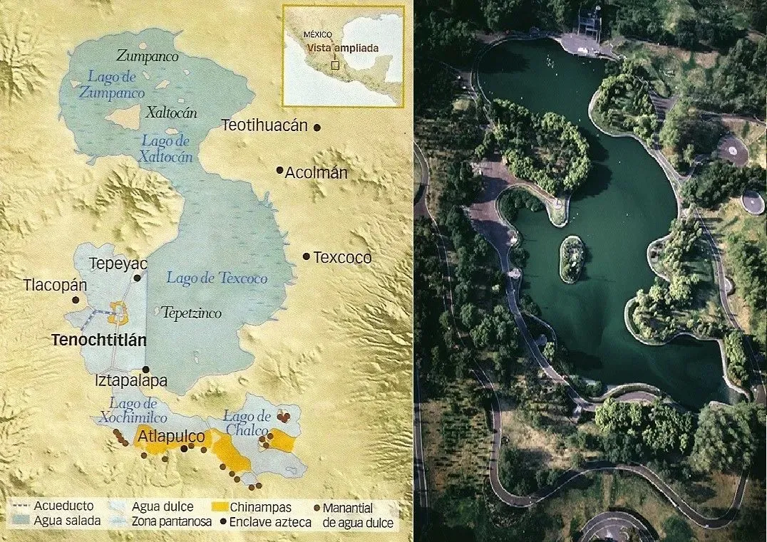 泰佐佐莫克公園的基址位于墨西哥城西北一片污染工業(yè)區(qū)的中心,長期以來受到嚴重的社會及環(huán)境問題的困擾。謝特蘭將其改造成為一座公園和博物館,創(chuàng)造了一個尺度巨大的地形模型,中間部位是一個意在重現(xiàn)曾經(jīng)充滿墨西哥河谷地區(qū)的湖泊系統(tǒng)輪廓線的人造瀉水湖一個湖泊。通過污水處理系統(tǒng),公園的湖泊和灌溉用水可以與附近居民區(qū)的用水循環(huán)再利用。