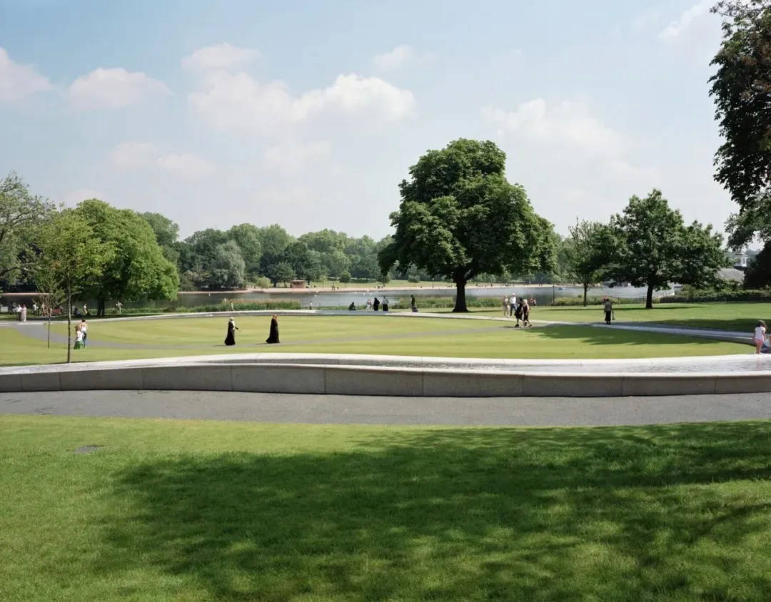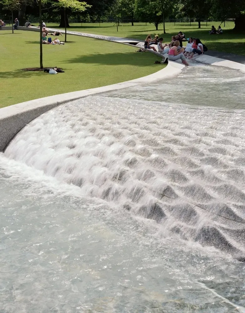 設計的理念基于戴安娜王妃生前的愛好與事跡,以 ‘Reaching Out – Letting In’ . “敞開雙臂–懷抱”為概念,設計了一個順應場地坡度的,在樹林中落腳的淺色景觀閉環(huán)流泉。整個景觀水路經(jīng)歷跌水,小瀑布,渦流,靜止等等多種狀態(tài),反映了戴安娜起伏一生。