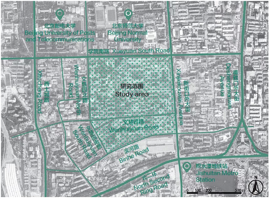 自2016年推行《老舊小區(qū)綜合整治工作方案(2017-2020)》至今,北京一直是老舊社區(qū)改造的先行城市。因此,筆者在北京老城區(qū)中選擇了較為有代表性的北太平莊街道進(jìn)行調(diào)研。這片5.17km2的街道區(qū)域轄37個(gè)社區(qū)居委會(huì),總?cè)丝?01614人(2010年)[15],擁有足夠的樣本數(shù)量用于開(kāi)展研究。