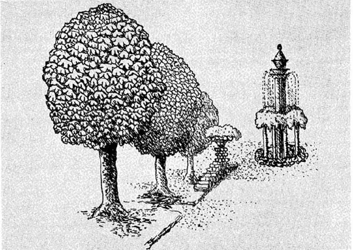 在20世紀70年代,拉素斯的設(shè)計充滿了體驗性的實驗,探索觸覺和視覺相互作用的關(guān)系。拉素斯認為空間分為觸覺性和視覺性。人們通??梢酝ㄟ^收集環(huán)境信息使用觸覺性空間,例如停車場、一級臺階等。而視覺性空間通常只可以看到卻無法接觸。在“從前的花園”這個項目中,拉素斯被委托為里昂附近的新城L'Isle d' Abeau規(guī)劃景觀(圖4)。