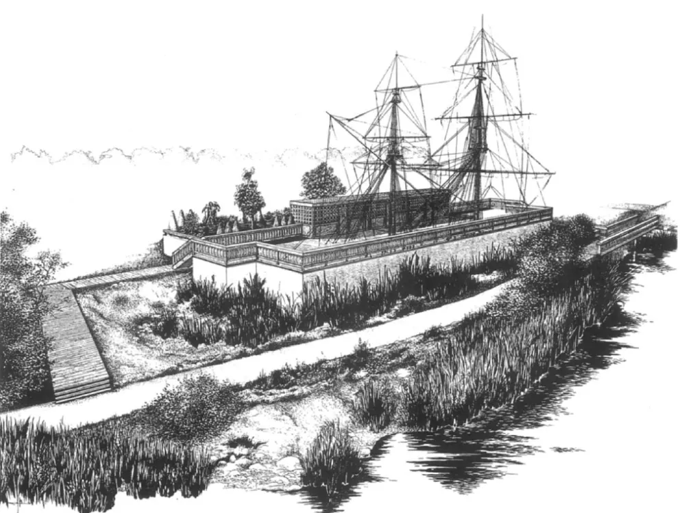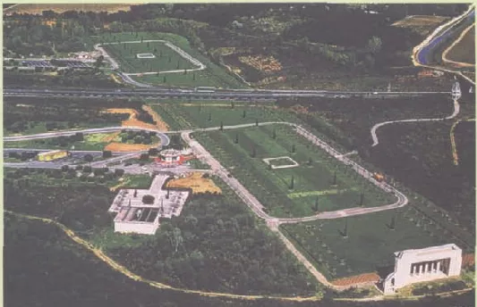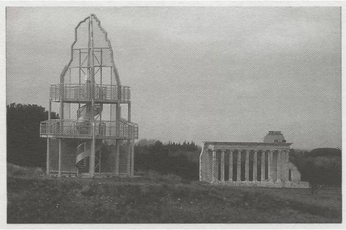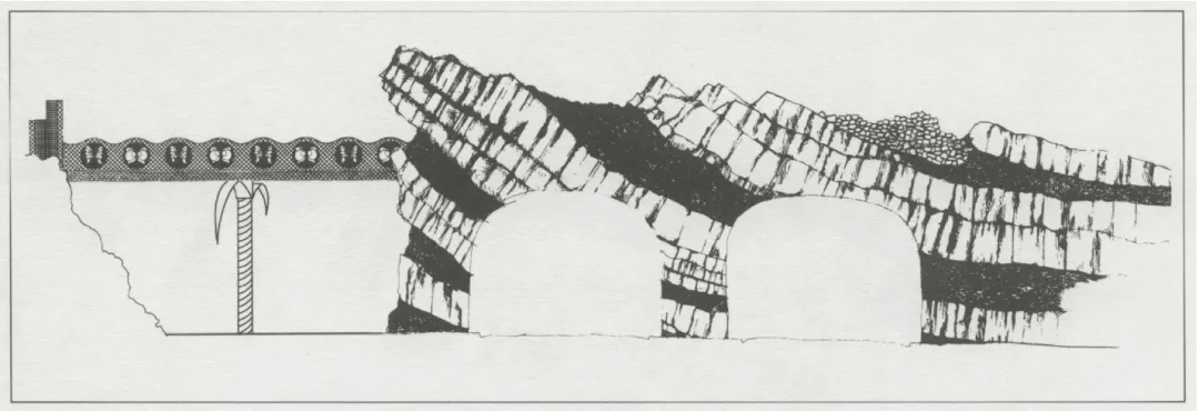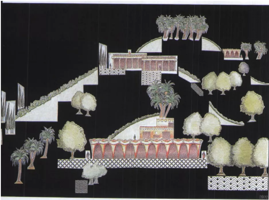 拉素斯提出可以把場地的每一層歷史看作地殼構(gòu)造的層——當新的地層出現(xiàn),舊的地層將不再可見,但當人們觀察地殼斷層面時,地殼的歷史變化便一目了然。于是,拉素斯認為不同時期的景觀特征應(yīng)盡可能的被強化,以便吸引游客并使他們發(fā)現(xiàn)不同的歷史時期。同時,他還要求模糊不同歷史時期的對比,將具有不同時期的景觀元素融為一體,這樣游客就可以運用跨越式思維,超越眼前所見事物去理解整個場地的景觀歷史。