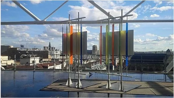 2017年,當巴黎蓬皮杜中心開展致敬展覽,并且邀請他本人設(shè)計位于第五層的花園時,拉素斯再次運用了色彩以及用現(xiàn)代材料代替自然元素的隱喻手法,塑造出巴黎空中一個富含趣味又引人聯(lián)想的空間。面積達到21平方米的彩色紙板排列出森林的意境,將視線引向巴黎圣母院和埃菲爾鐵塔。一旁的水池映著樹葉和彩色金屬的光澤,讓人暫時忘記身在喧鬧的巴黎城中。轉(zhuǎn)身一看,一個貌似巨型蚊子的裝置安放在水面。對此裝置,拉素斯希望訪客們有自己的解讀,又體現(xiàn)了貫穿他設(shè)計生涯中,穿插意義模糊曖昧的元素以鼓勵人們思考,得出自己的結(jié)論的意圖。