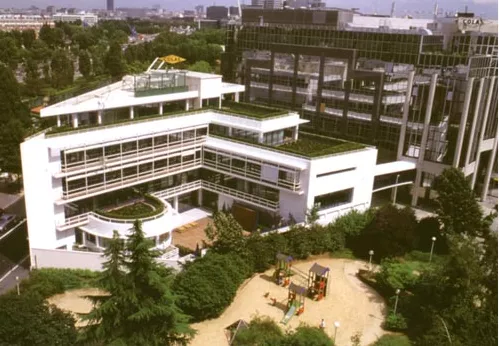 除了大型的基礎(chǔ)設(shè)施和公園之外,拉素斯還將他的設(shè)計哲學帶到了更小尺度的項目中,為COLAS公司辦公樓設(shè)計的屋頂花園就是其中一例。