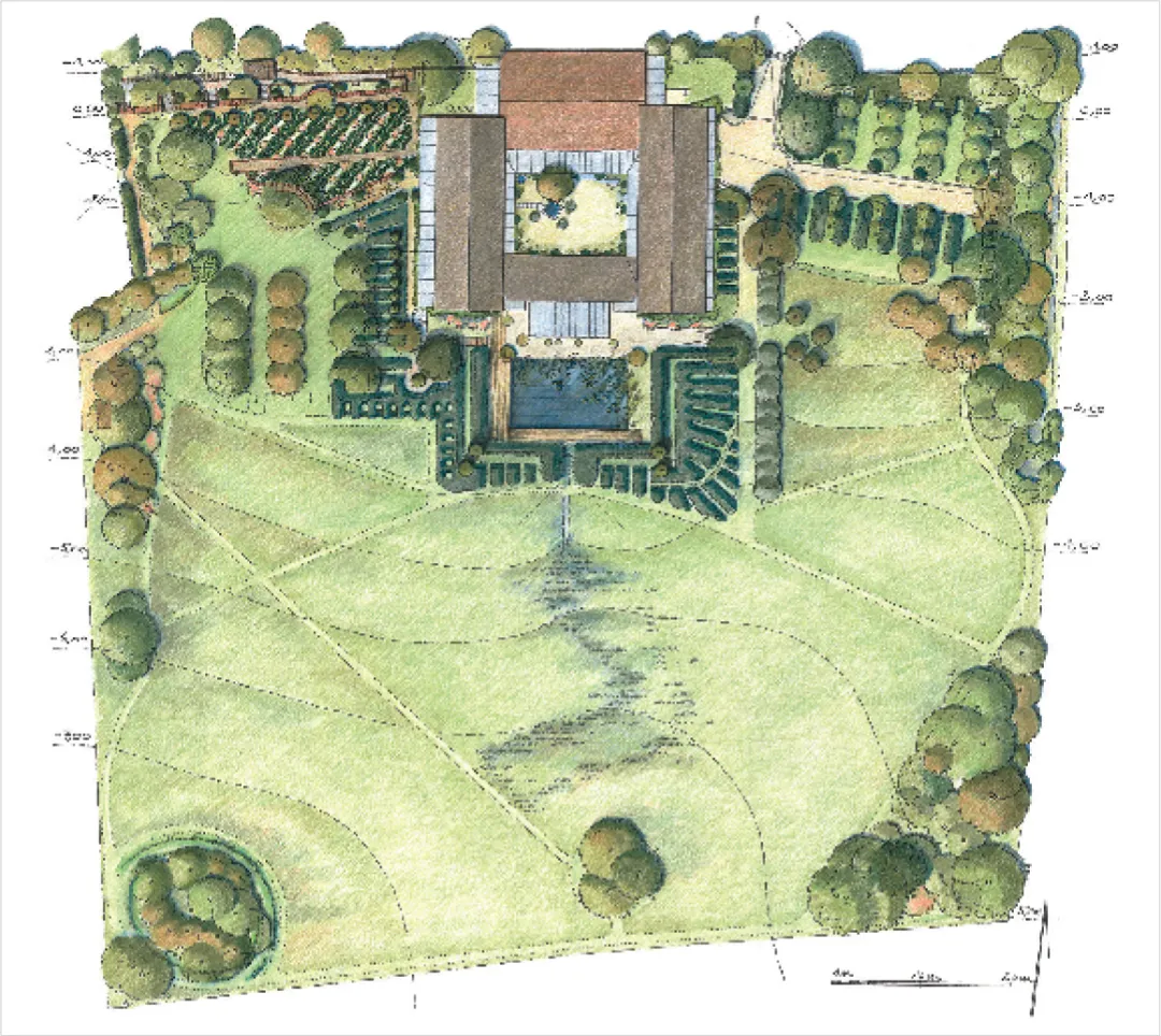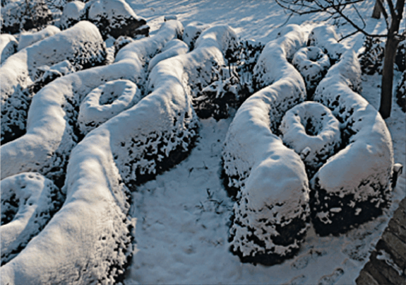 在這片田地中,拉茨基于矯飾主義盡情地對院子里的角木進(jìn)行修剪,塑造出“橫看成嶺側(cè)成峰”的視覺形態(tài)。除修剪外,拉茨還進(jìn)行植物組合,如將玫瑰與各種開花植物暗藏在富于結(jié)構(gòu)感的花圃中,以消除冬季玫瑰的枯敗感并增加夏季驚喜。