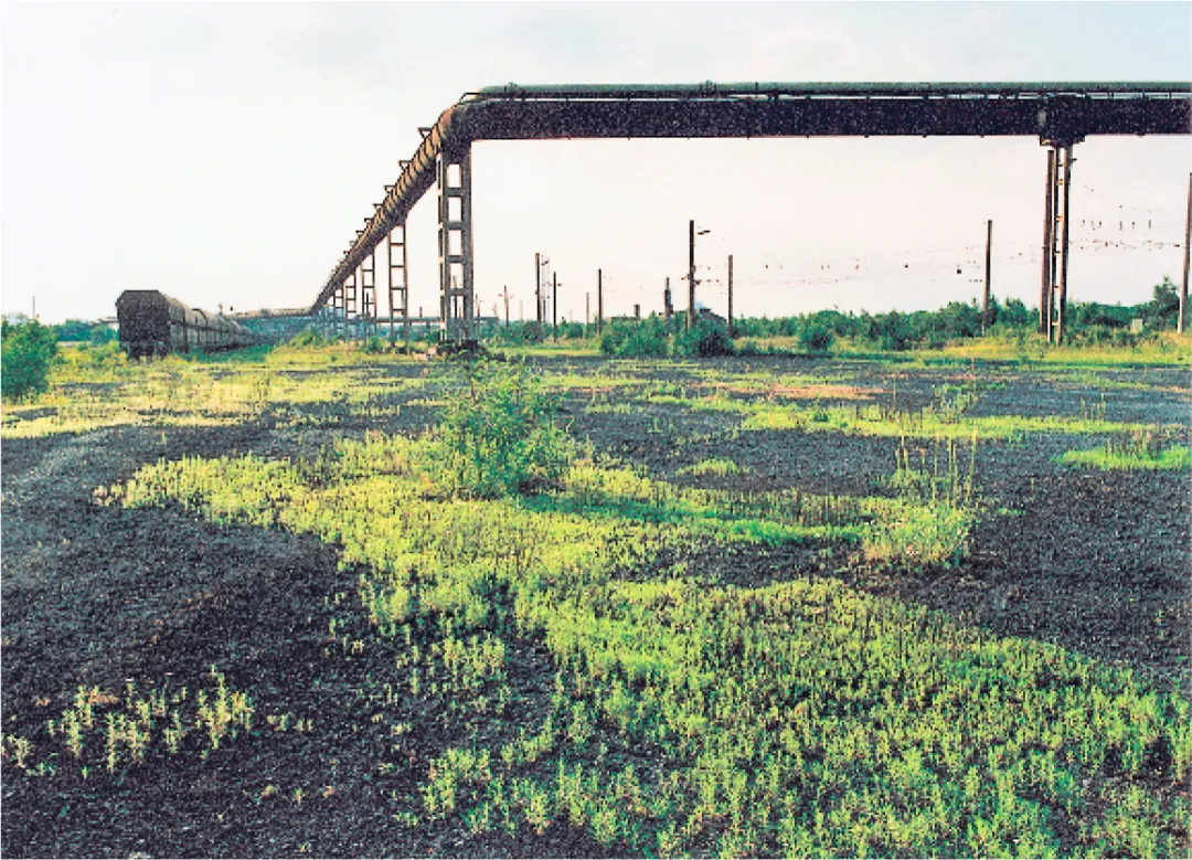 除了工業(yè)與自然的直接碰撞,北杜伊斯堡內(nèi)還有著大量的自然與工業(yè)滲透的景色。伴隨過去轟鳴的貨車一并到來的,是異域植被的種子。它們在此處萌發(fā),于特殊的土壤與環(huán)境下逐漸蔓生成斑塊,毒黃色、銹紅色、青綠色夾雜在一起,昭示著工業(yè)自然(industrial nature)的獨(dú)特韻味,也極大減少了人工修復(fù)與傳統(tǒng)栽植的成本。