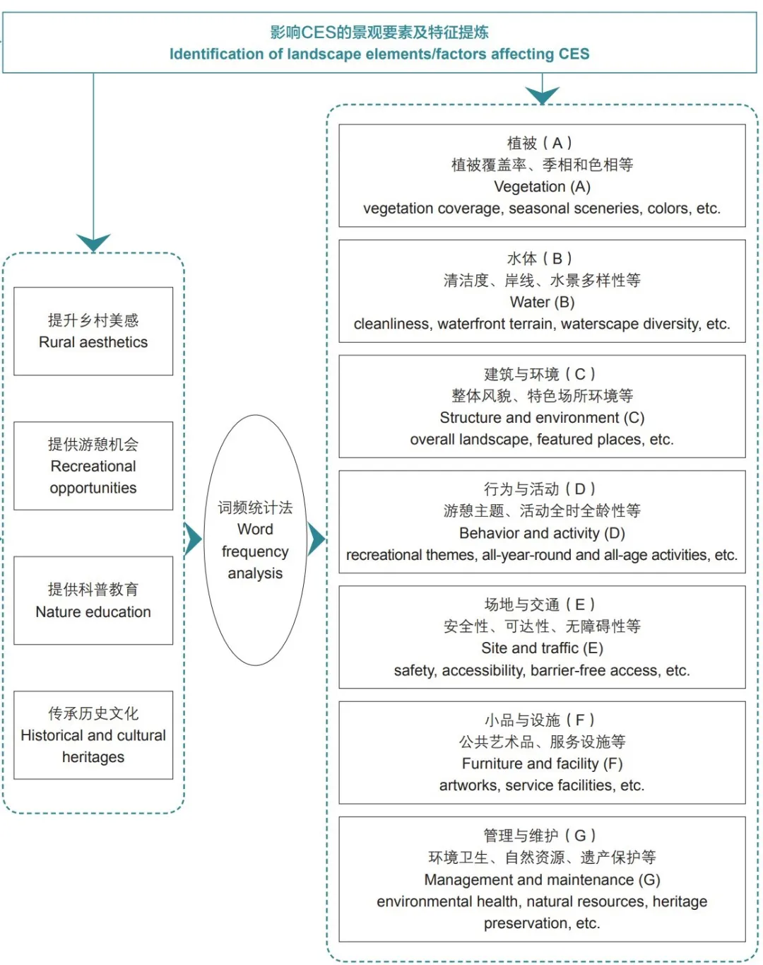 ▼影響CES的景觀要素及特征提煉 ? 劉宇舒,王振宇,單卓然