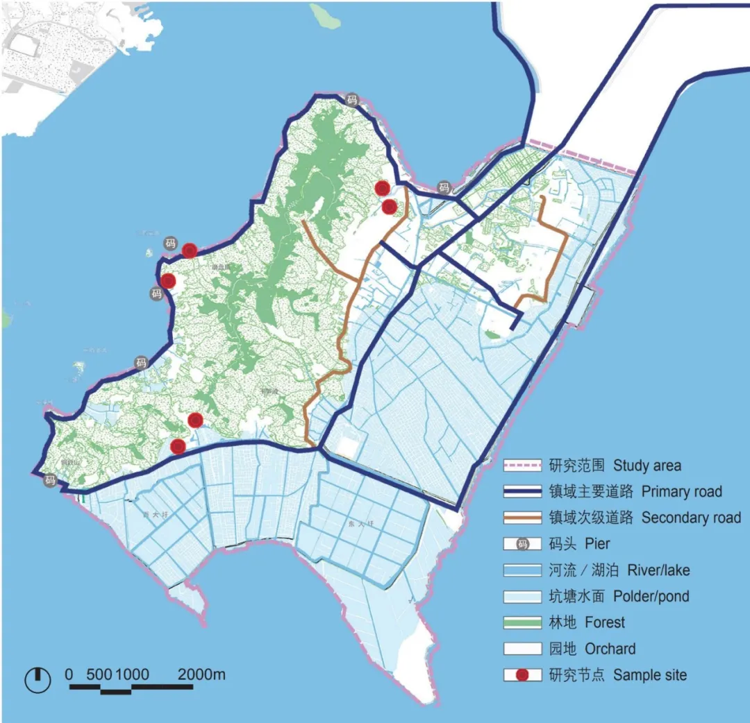 研究選取江蘇省蘇州市東山鎮(zhèn)作為對象,“一山七水”是東山地區(qū)的主要空間環(huán)境要素,域內(nèi)存在臨湖、臨河、臨圩等水域空間,類型豐富。本研究在東山鎮(zhèn)選取6個地理條件相似、經(jīng)濟發(fā)展水平相當(dāng)、文化環(huán)境同源且使用程度較高的樣本水域空間展開研究,包括北部臨河型節(jié)點2個,西部臨湖型節(jié)點2個,以及南部臨圩節(jié)點2個。