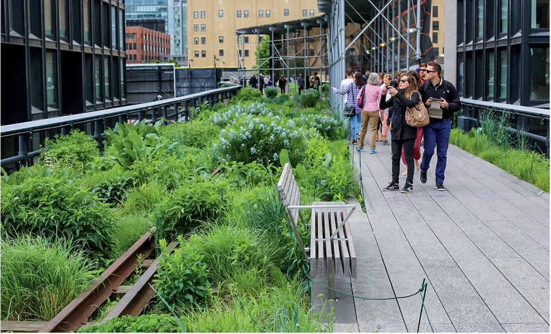 對(duì)生態(tài)學(xué)和植物群落相關(guān)概念的理解和運(yùn)用是當(dāng)代景觀設(shè)計(jì)實(shí)踐中非常重要的一環(huán)。公共領(lǐng)域中的種植設(shè)計(jì)涵蓋了從低影響開(kāi)發(fā)中人行道旁的生態(tài)濾溝、大型的景觀(生態(tài))修復(fù),到流域尺度的綠色基礎(chǔ)設(shè)施。越來(lái)越多的公共花園和公園開(kāi)始運(yùn)用生態(tài)修復(fù)理念。這些項(xiàng)目讓城市居民有機(jī)會(huì)感知一種城市荒野的意象,并推廣了“親自然城市”的理念。此外,這些項(xiàng)目還展示了種植設(shè)計(jì)和景觀管理的新途徑。