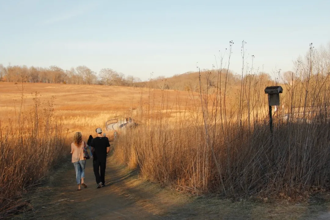 ▼格雷斯農(nóng)場(chǎng)的草甸。格雷斯農(nóng)場(chǎng)是一個(gè)占地約 32hm2的公共空間,由 SANAA設(shè)計(jì)事務(wù)所、OLIN設(shè)計(jì)事務(wù)所和拉里·韋納合作設(shè)計(jì)完成。景觀設(shè)計(jì)重新引入了鄉(xiāng)土物種,提高了生態(tài)多樣性(攝于2018 年 8月)。? Sahar Coston-Hardy / OLIN
