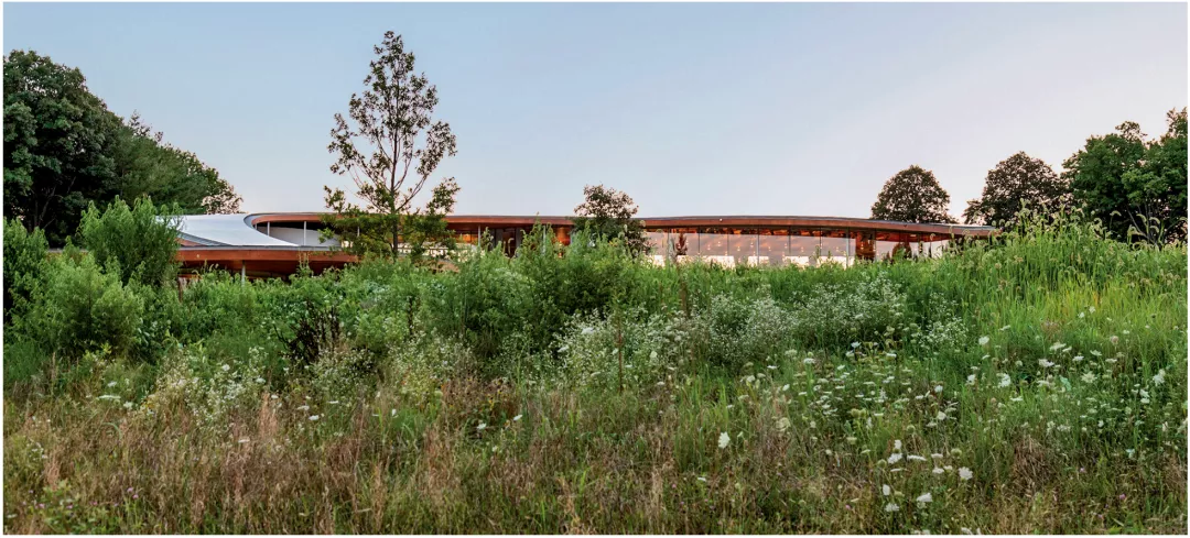 ▼仍處于生長(zhǎng)初期的格蘭斯通博物館緩坡草甸。約16hm2的草甸串聯(lián)起了整個(gè)博物館景觀,在種植設(shè)計(jì)中選擇了一些能夠?qū)ι鷳B(tài)系統(tǒng)起到滋養(yǎng)作用的植物品種(攝于2018年10月,當(dāng)時(shí)新博物館剛剛對(duì)公眾開(kāi)放不久)。? Taro Zheming Cai