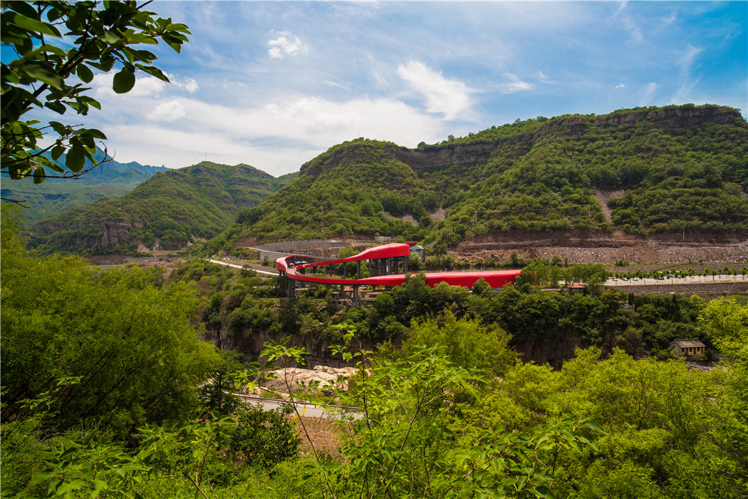 紅旗渠是是20世紀60年代林縣(今林州市)人民在極其艱難的條件下,從太行山腰修建的引漳入林的工程,被譽為“世界第八大奇跡”。紅旗渠上的“太行天梯”用充滿豪情的浪漫主義手法,勾勒著險峻山勢間水渠的蜿蜒曲折和步道的凌空盤旋。設計巧妙地解決了人流交通、車流組織、空間體驗、科普教育和景觀保護等一系列挑戰(zhàn),以最小的干預和當代設計語言,保護了紅旗渠的壯麗景色,闡釋了新時代的紅旗精神。