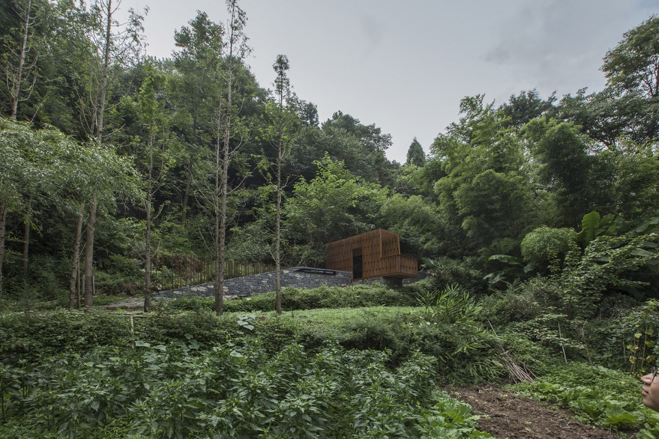 設計師有意將建筑的形體隱匿于環(huán)境和山勢之中,保持景觀與山巒的視線軸通暢。建筑室內(nèi)外的材料也以當?shù)氐氖暮秃煌翞榛A,以木制元素為裝飾來呼應天人合一的理念,同時也力圖實現(xiàn)一種“文”與“質(zhì)”相平當?shù)脑O計語境。相比現(xiàn)代建筑的“建筑中心論”,這種以自然與歷史為中心的設計,體現(xiàn)了中國文化的根基,是一種更值得探索的現(xiàn)代中國式的詩情畫意。