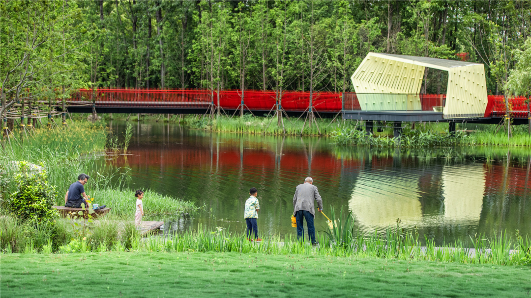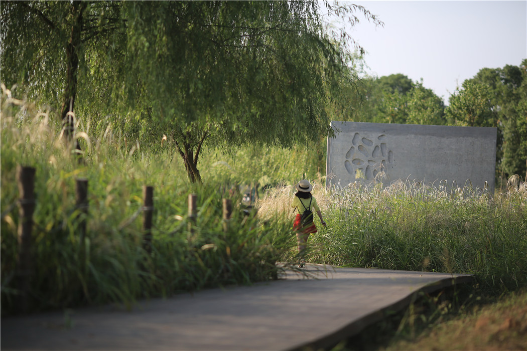 面對景區(qū)的“綠心”不夠綠和“紅心”不夠紅的兩大挑戰(zhàn),設計團隊提出以“春到江南”為主題,將“紅船魂”與“江南韻”相融合,串聯(lián)起整個方案設計的主線。在生態(tài)策略上以水為脈進行修邊幅,柔駁岸,以葦片為語,重塑江南韻。通過多樣、無障礙慢行系統(tǒng)提升為重點來改善景觀基礎設施。此外,設計還通過一些列特色的橋、亭、臺及城市小品等“紅色”設施,來建立文化旅游軸帶,凸顯紅色文化,再現(xiàn)紅船精神。