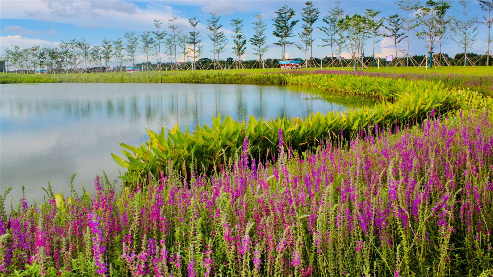 設(shè)計充分踐行“山水林田湖草生命共同體”理念,通過點(diǎn)源和面源的污染治理,恢復(fù) “江、渠、塘、湖、海、灘” 的自然交換功能,全面改善馮家江水體水質(zhì)。對現(xiàn)狀江、渠、塘、湖、海、灘六大要素進(jìn)行生態(tài)修復(fù),恢復(fù)生態(tài)系統(tǒng)自我調(diào)節(jié)能力,提升生態(tài)系統(tǒng)服務(wù)功能,自北向南形成湖庫、基塘、紅樹及沙洲四大生境。在科學(xué)研究基礎(chǔ)上建立植物培育基地,共計培育水生植物36種,研究其對當(dāng)?shù)丨h(huán)境的適用性以及改善水質(zhì)、消解污染物的能力,自主培育南方堿蓬、闊苞菊等耐鹽堿植物。